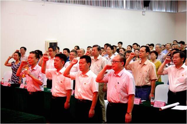 省科协系统举办庆祝中国共产党成立97周年暨表彰大会在庄严的国歌声中拉开帷幕。会议第一项议程由省科协党组成员、副主席张辉学领誓,全体与会党员举起右手,重温了入党誓词。 (通讯员:谭清文)