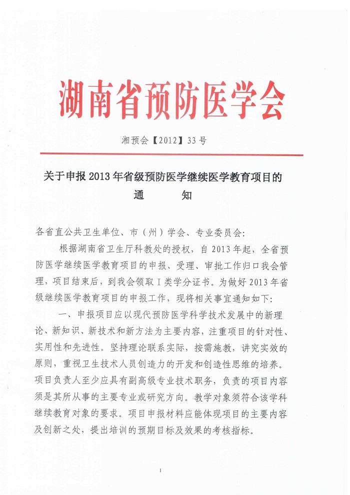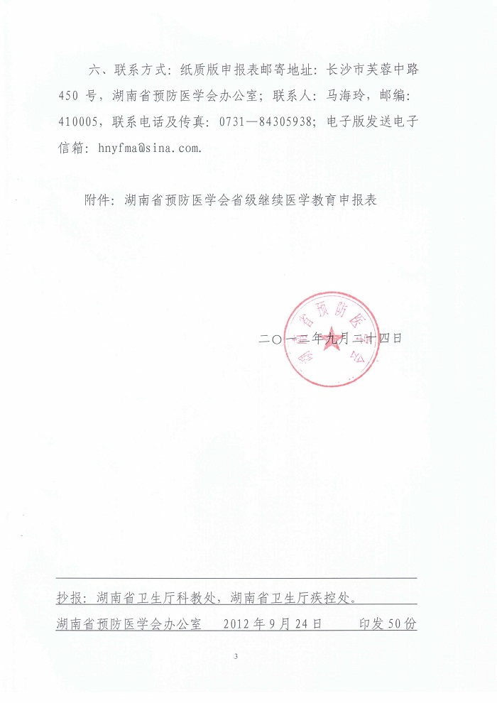 附件:湖南省预防医学会省级继续医学教育申报表新