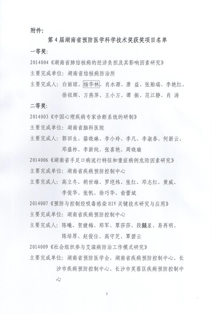 关于第4届湖南省预防医学科学技术奖奖励项目的决定
