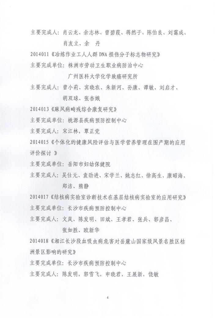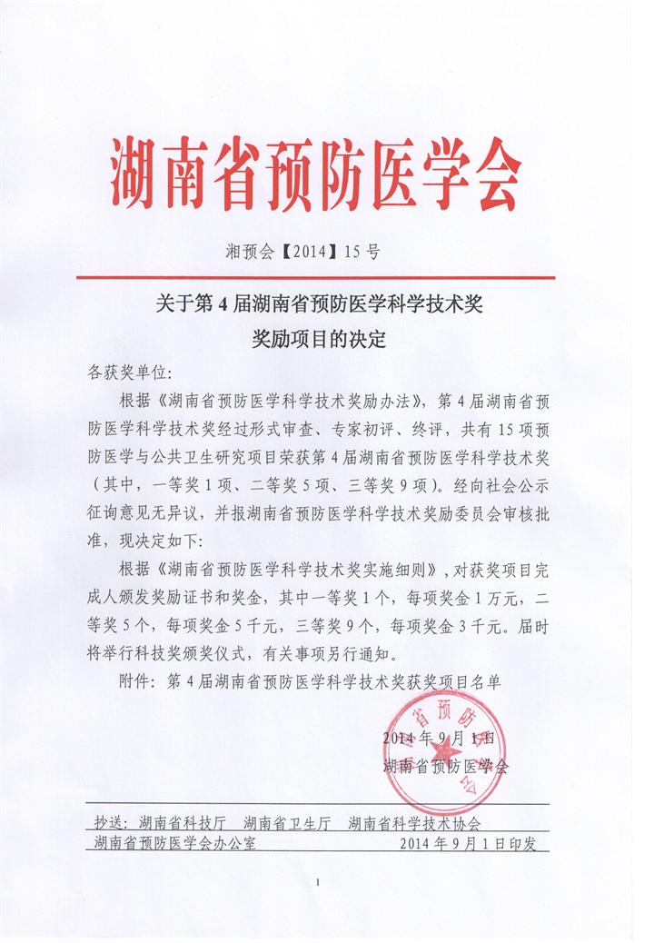 关于第4届湖南省预防医学科学技术奖奖励项目的决定